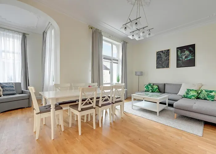 The 128 m^2 Lion Apartments - Palermo Spacious Family Apartment 3 Min Walk From The Beach is located in a residential area of Sopot just 0.7 km from Sopot Wax Museum. Guests can enrich their stay with activities like hiking, horse riding, and bowling.